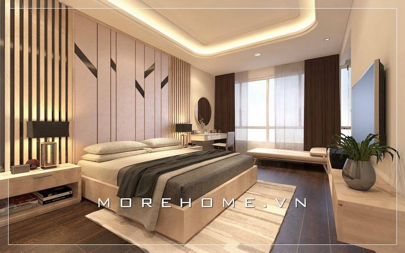 Mẫu giường ngủ chung cư hiện đại dành cho 2 người đầy sang trọng và tinh tế