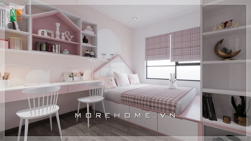 Thiết kế nội thất giường ngủ con gái phong cách hiện đại, dễ thương