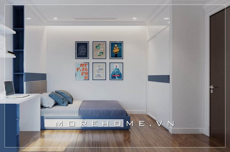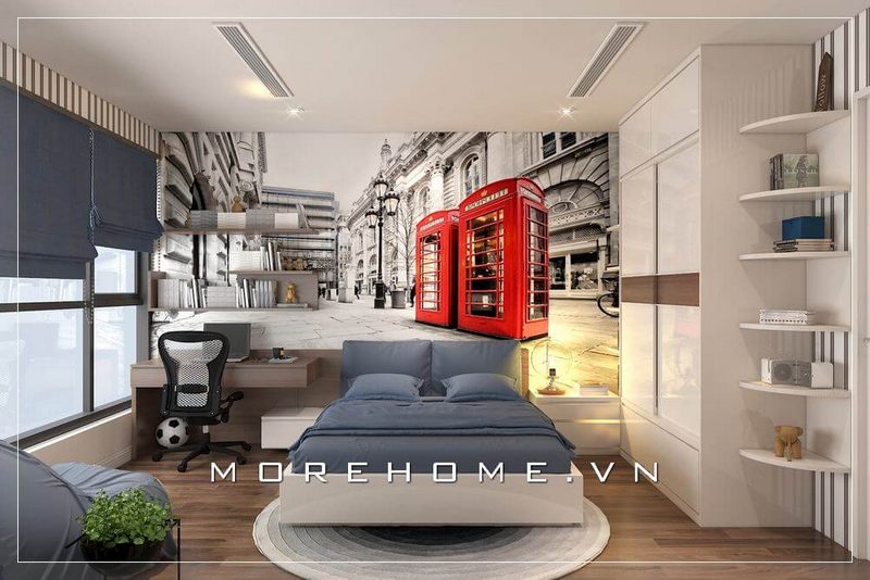 Thiết kế giường ngủ bé trai phong cách hiện đại, kết hợp ngăn kéo phía dưới tiện lợi