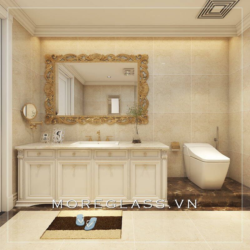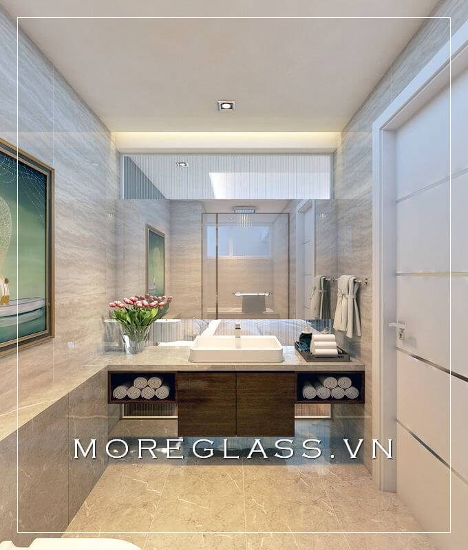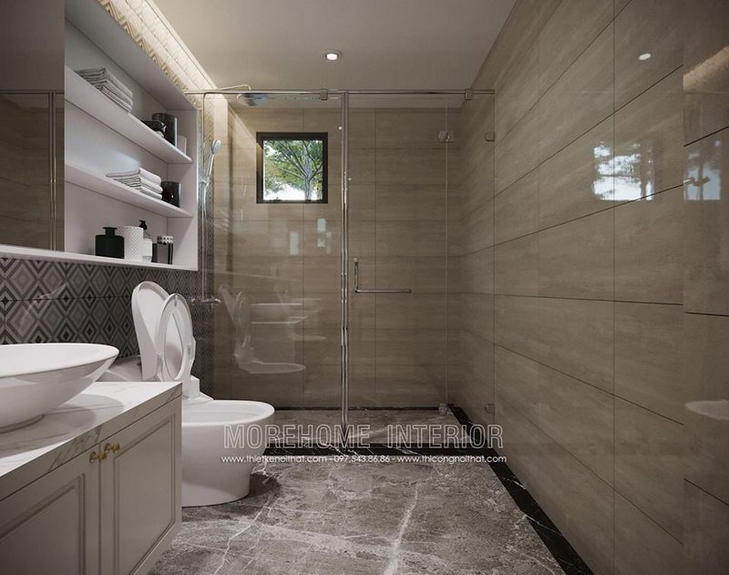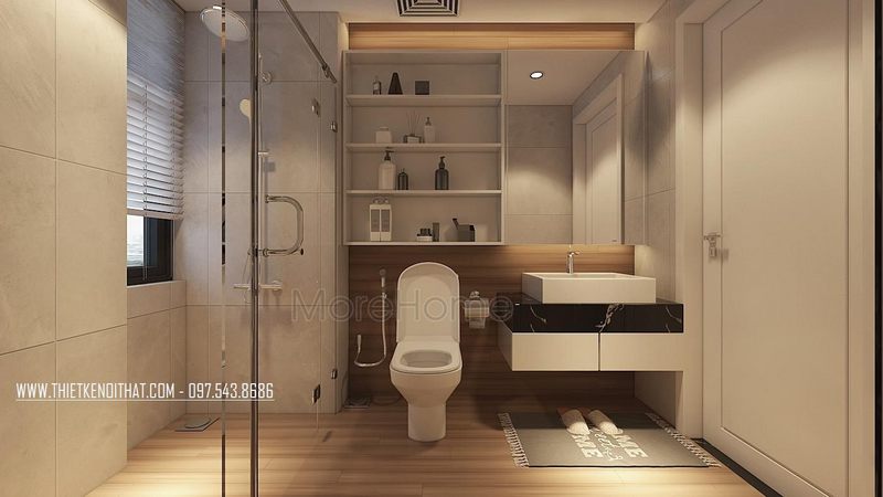 trang trí phòng vệ sinh với nội thất hiện đại không gian tươi sáng sạch sẽ mang tới cảm giác thoải mái cho gia chủ khi sử dụng.