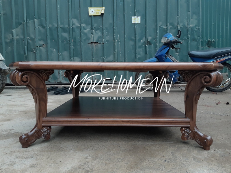 Bàn trà gỗ tự nhiên tân cổ điển các chi tiết chạm khắc tỉ mỉ, cẩn thận từng hoa văn họa tiết mang đến sự sang trọng, cao cấp, tô điểm cho không gian phòng khách