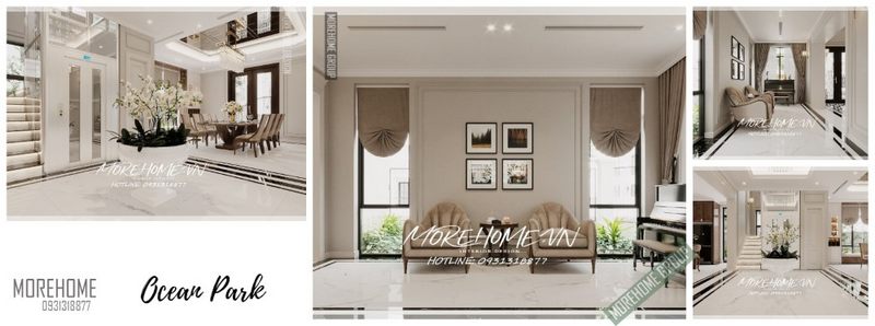 Mẫu thiết kế sảnh hành lang công trình biệt thự Ocean Park được KTS Morehome chăm chút từng không gian, với sự bố trí nội thất hài hòa hợp lý, mang đến trái nghiệm sống hoàn hảo cho khách hàng