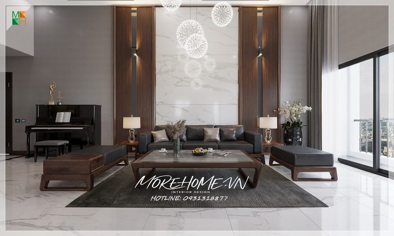 Nội thất phòng khách thiết kế hiện đại tiện nghi và thẩm mỹ thể hiện sự sang trọng, cao cấp