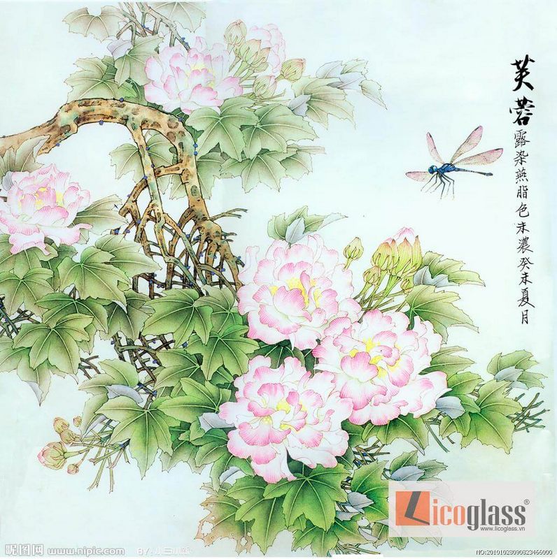 Mẫu thiết kế tranh kính hoa mẫu đơn trắng mang một vẻ đẹp tinh khôi, thanh khiết, được mệnh danh là vua của các loài hoa