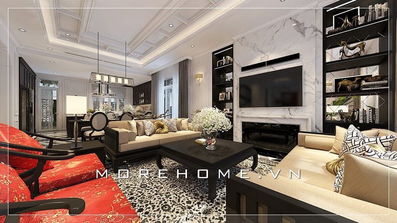 Ngắm nhìn mẫu thiết kế phòng khách biệt thự sang chảnh, ấn tượng đến từ Morehome.