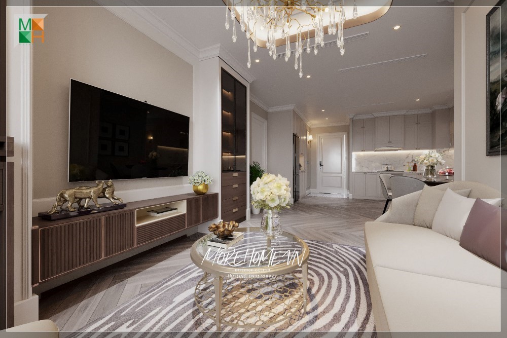 Thiết kế vô cùng phù hợp với căn hộ gia đình có diện tích vừa phải đi theo phong cách tân cổ điển