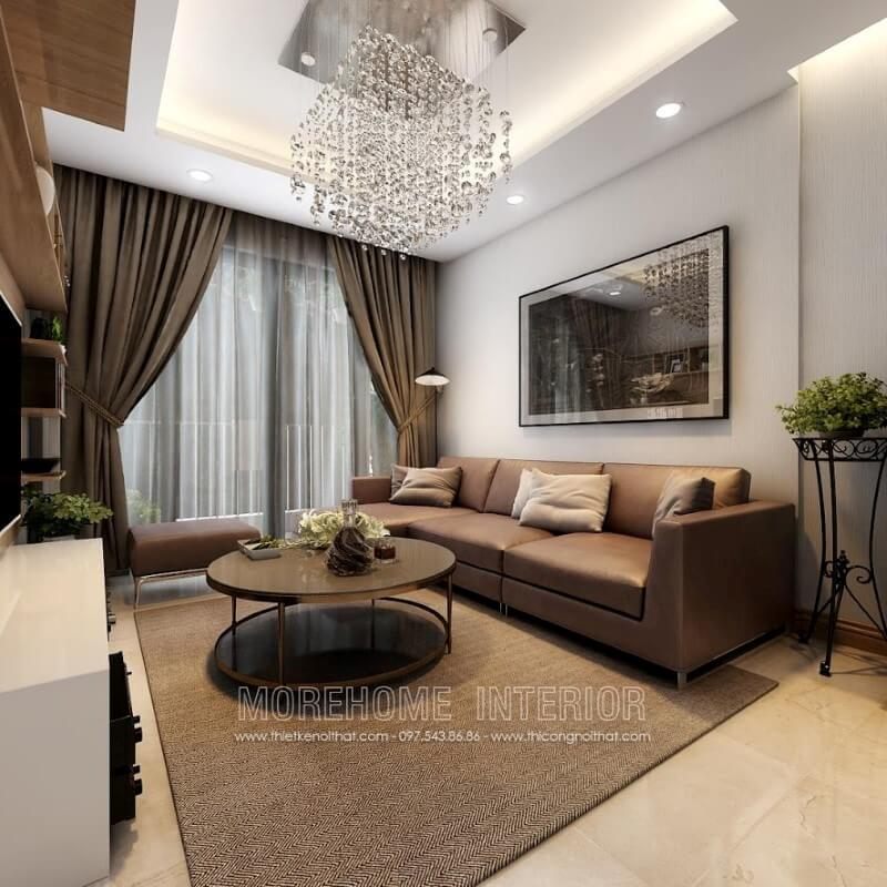 Mẫu thiết kê nội thất phòng khách chung cư đẹp với tông 3 tông màu chủ đạo: trắng, nâu, be mang vẻ đẹp sang trọng, tinh tế cuốn hút mọi ánh nhìn
