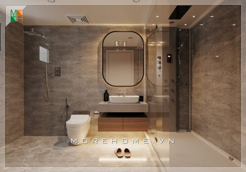 Ngoài ra, việc sử dụng vật liệu kính cường lực và thép không gỉ cho các bộ phận như lavabo, bồn tắm hay vòi sen cũng đem lại sự độ bền và thẩm mỹ cao. Những vật liệu này không chỉ dễ dàng lau chùi mà còn giữ được vẻ mới trong thời gian dài, tiết kiệm chi phí cho việc bảo trì và duy trì nét sang trọng cho căn phòng tắm của bạn.