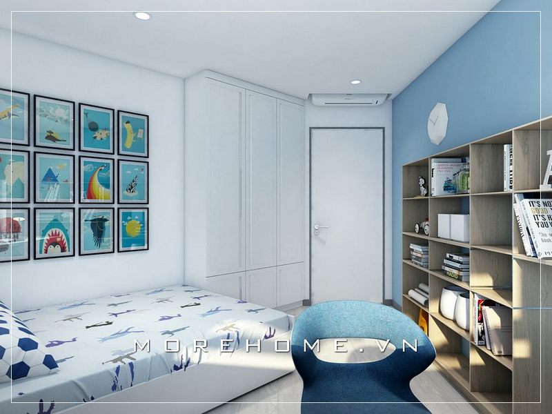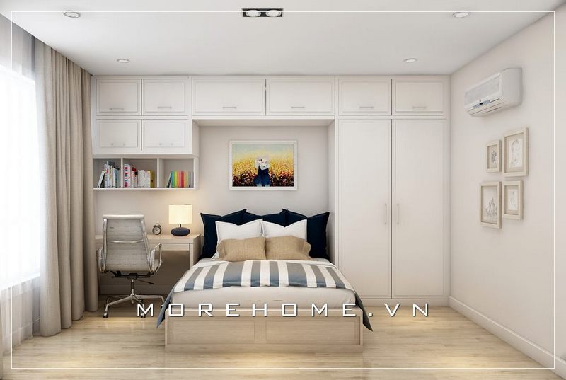 Phòng ngủ chung cư được trang trí với một mẫu kệ tủ quần áo kịch trần hiện đại để tạo nên sự ấn tượng.