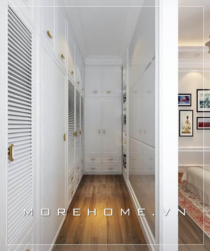 Để tiết kiệm không gian hiệu quả, bạn có thể xem xét việc sử dụng các loại móc treo để treo váy áo, giày dép, hoặc khan quàng. Đồ dung mỹ phẩm và phụ kiện khác cũng nên được tổ chức ngăn nắp trong hộp hoặc rổ để tránh làm rối và chiếm diện tích không cần thiết. Bên cạnh đó, việc bố trí chiếc ghế hay tấm kệ nhỏ bên trong tủ có thể giúp bạn thuận tiện hơn khi chọn đồ hoặc thay đổi trang phục hàng ngày.